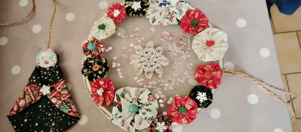 Nous souhaitions partager avec vous un joli moment de convivialité : notre journée de Noël de l’association. À cette occasion, l’ensemble des adhérents s’est retrouvé pour une activité créative et festive : la réalisation d’une couronne de Noël, une belle idée proposée par les patcheuses.